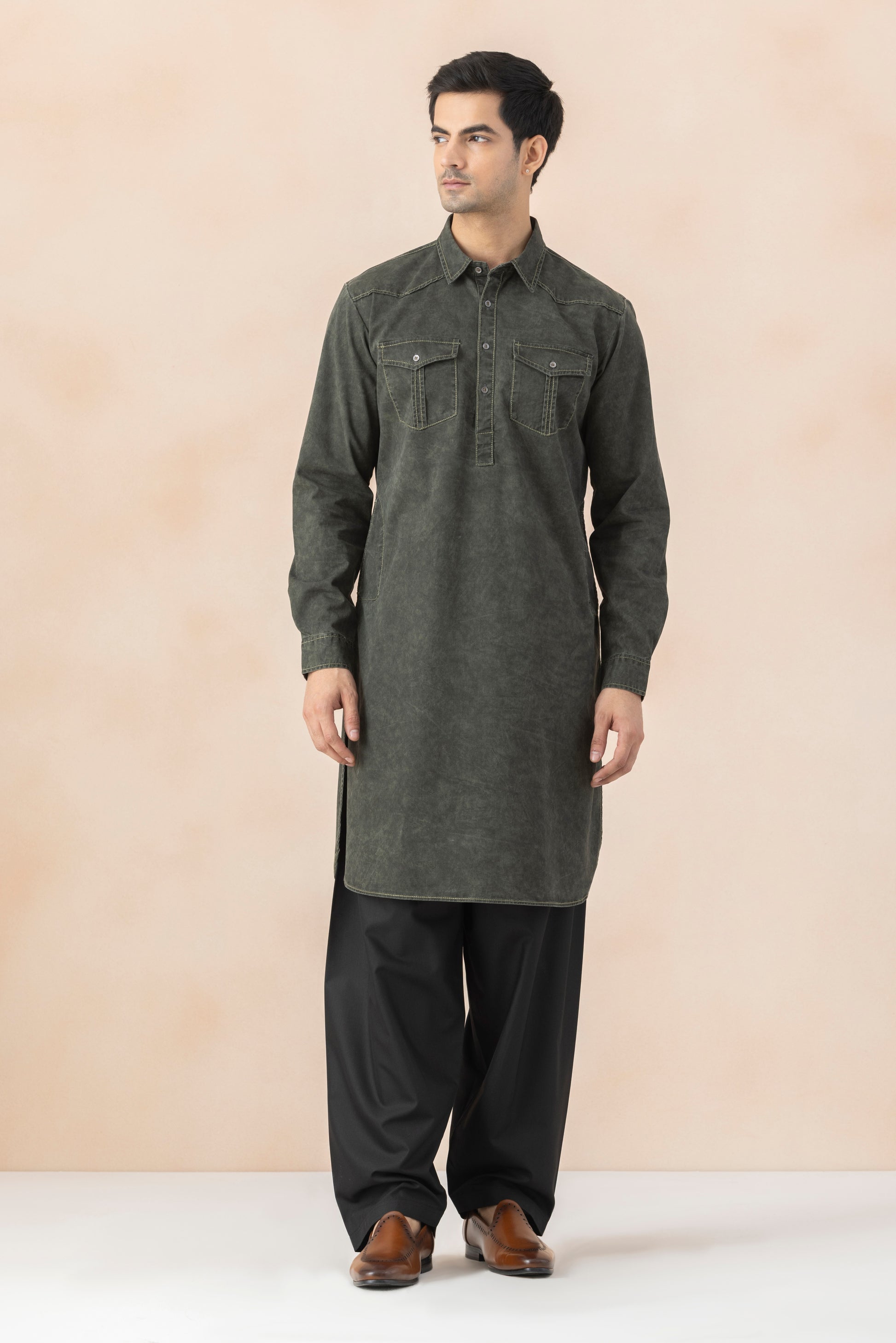 Pattern: Pathani Kurta with front pocket and yoke
