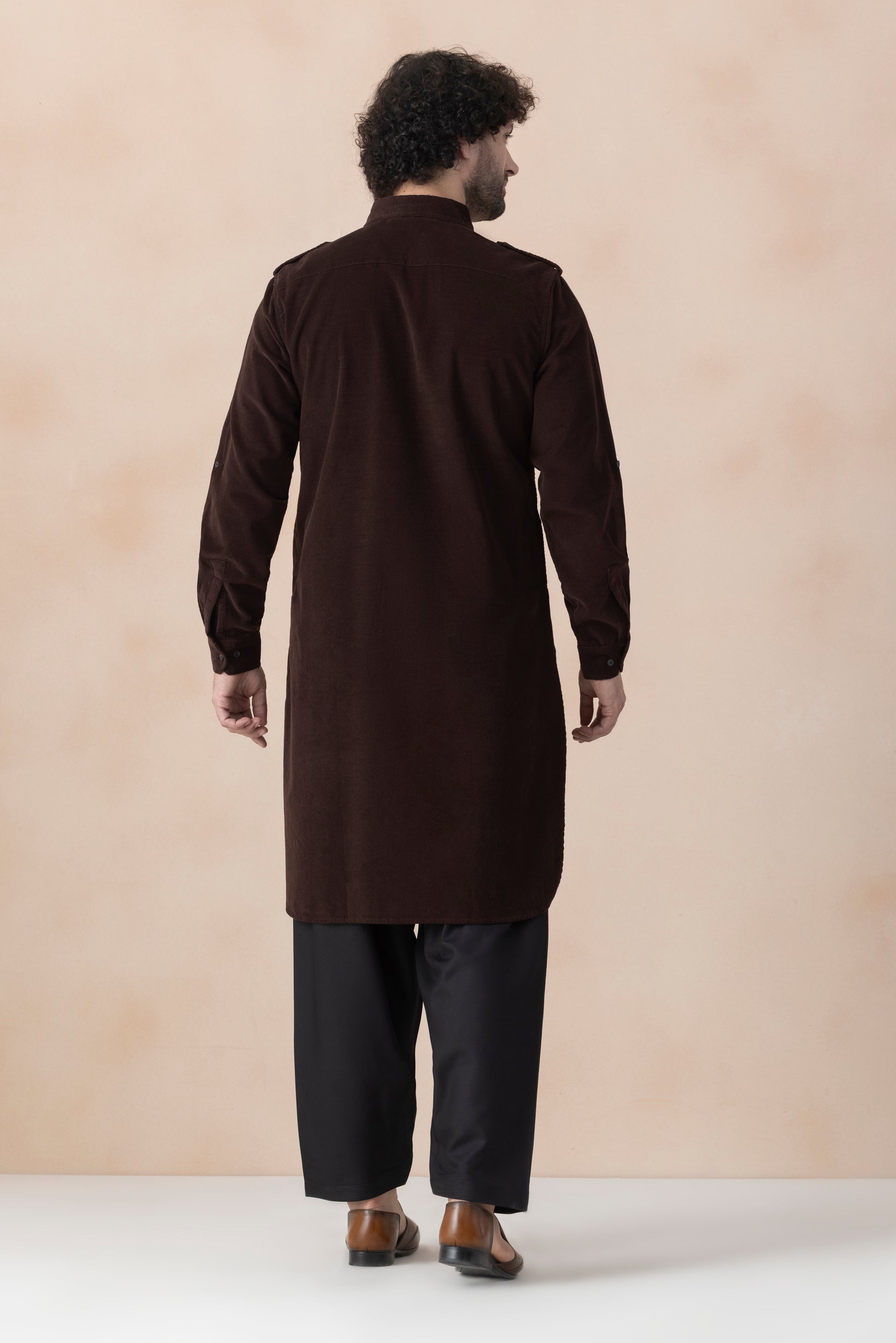 Men's Dark Brown Solid Corduroy Pathani