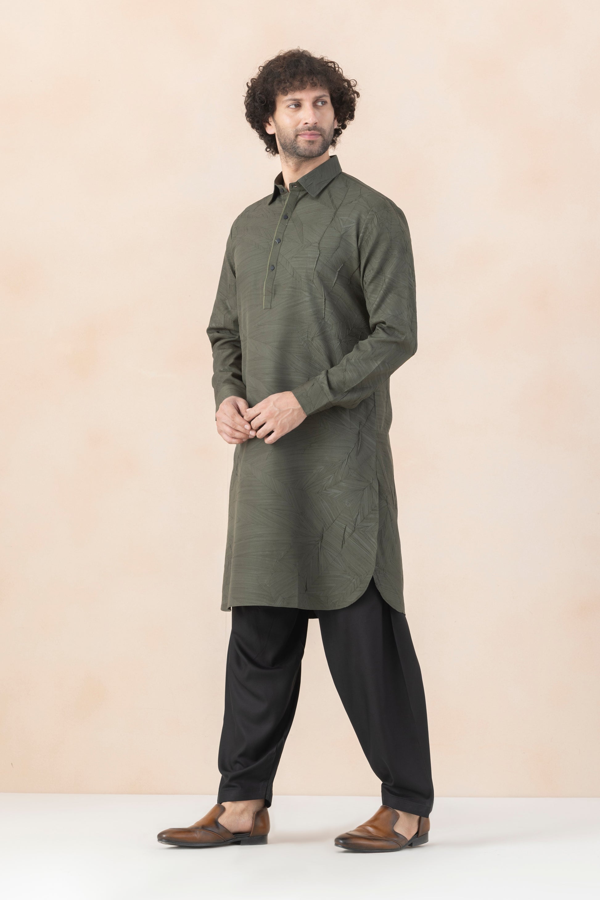 Men's Olive Green Crush Pathani Set